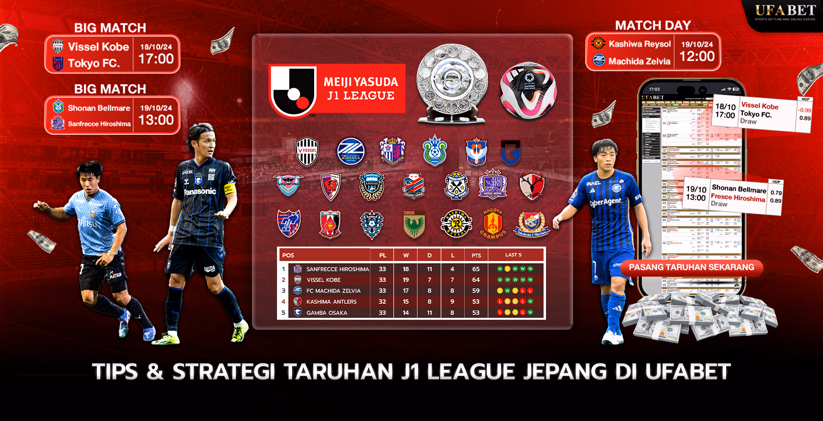 La J League de Japón de Ufabet es la oportunidad de apuestas en línea ofrecida por la plataforma Ufabet para la liga profesional de fútbol más alta de Japón. La J League, parte del sistema más amplio de la J-League, es famosa por su naturaleza competitiva y calidad de juego. La liga se estableció en 1992 y fue conocida como J League desde 1993 hasta 1998, y ha crecido en popularidad tanto a nivel nacional como internacional.